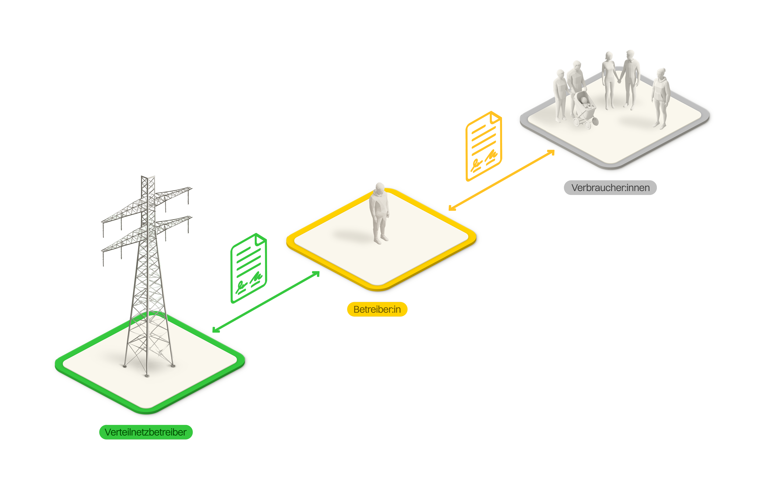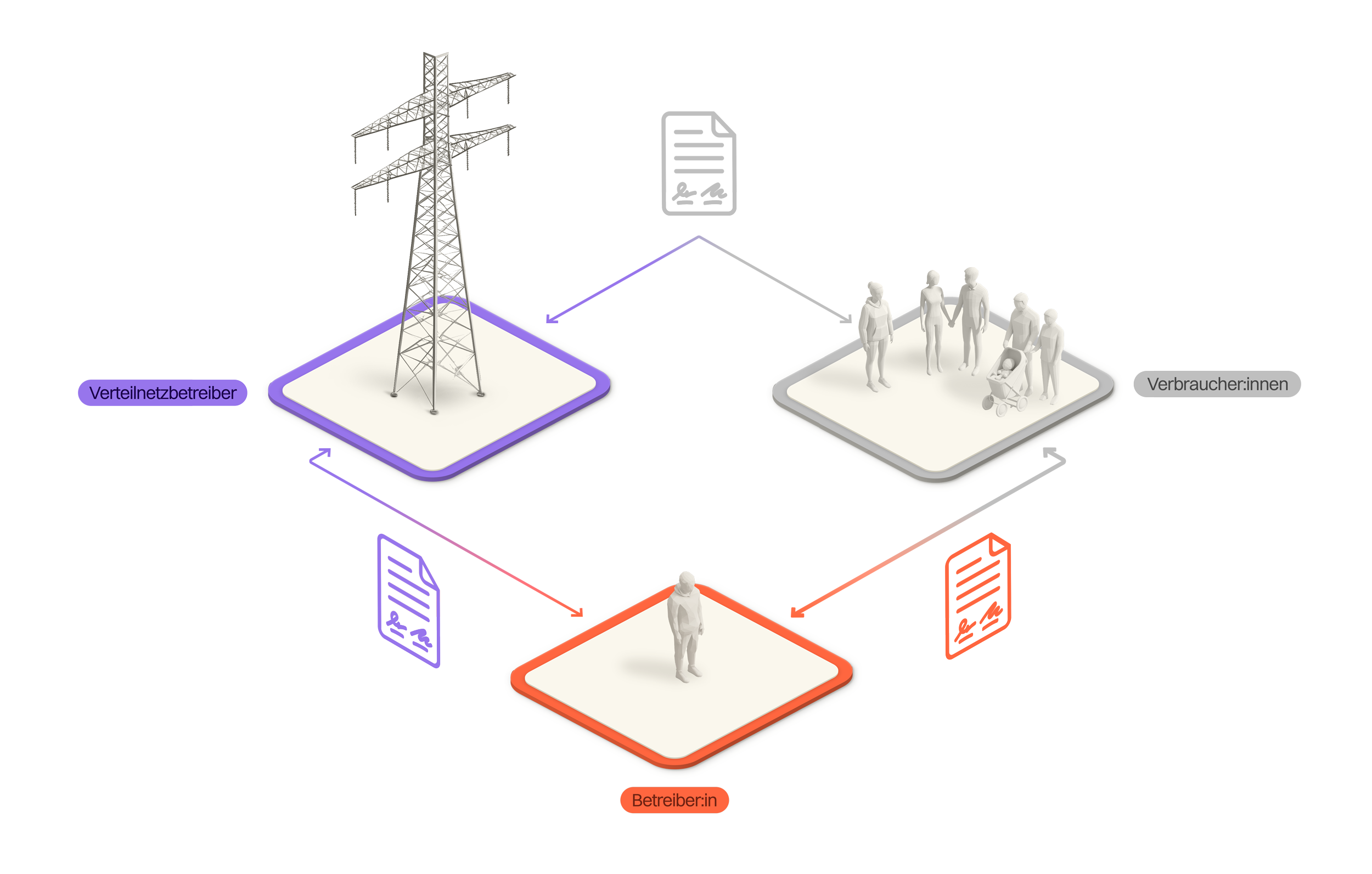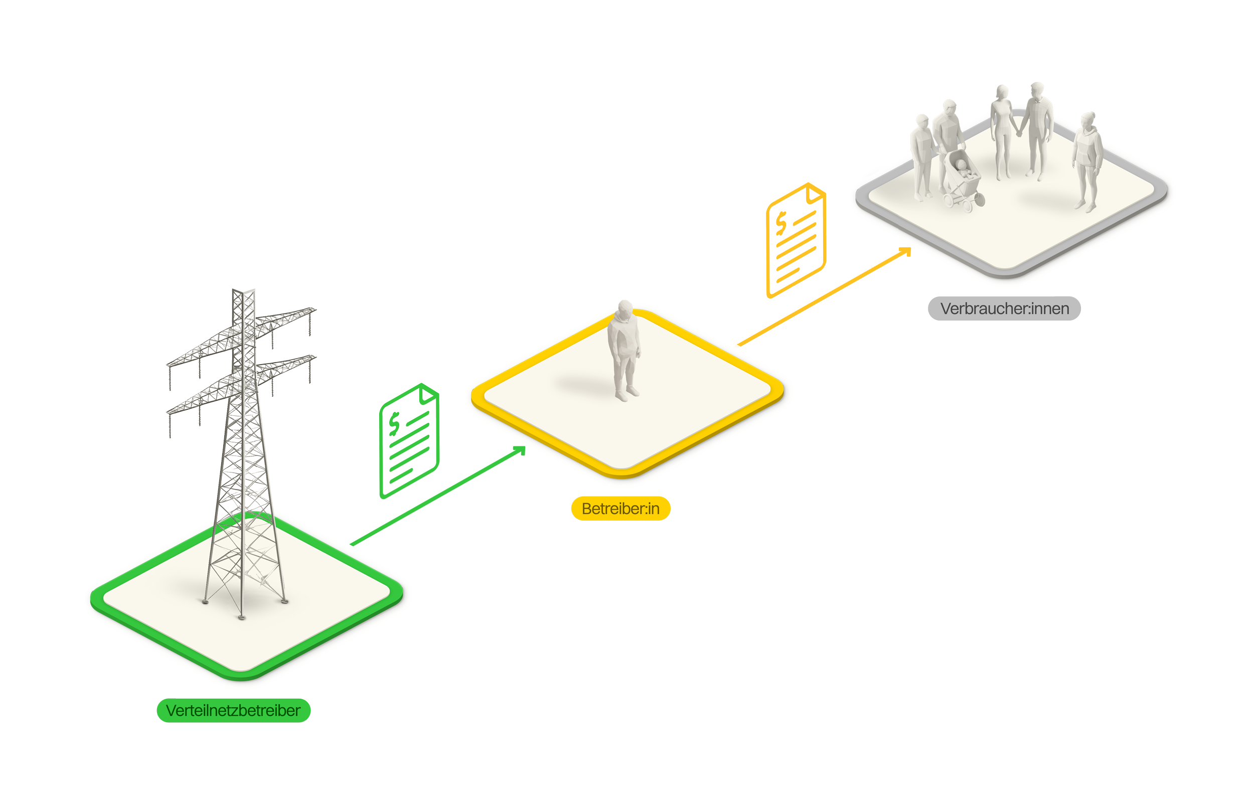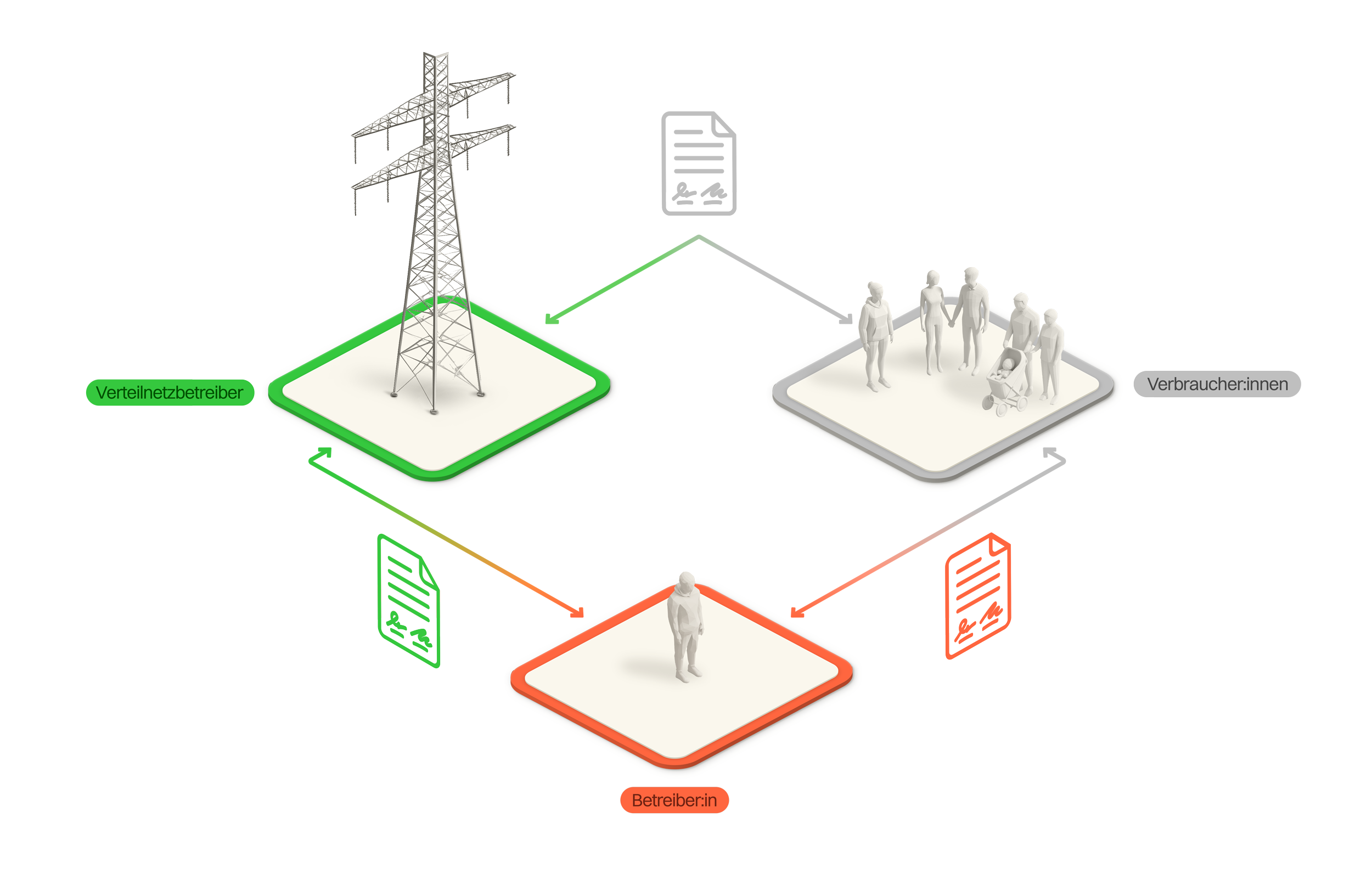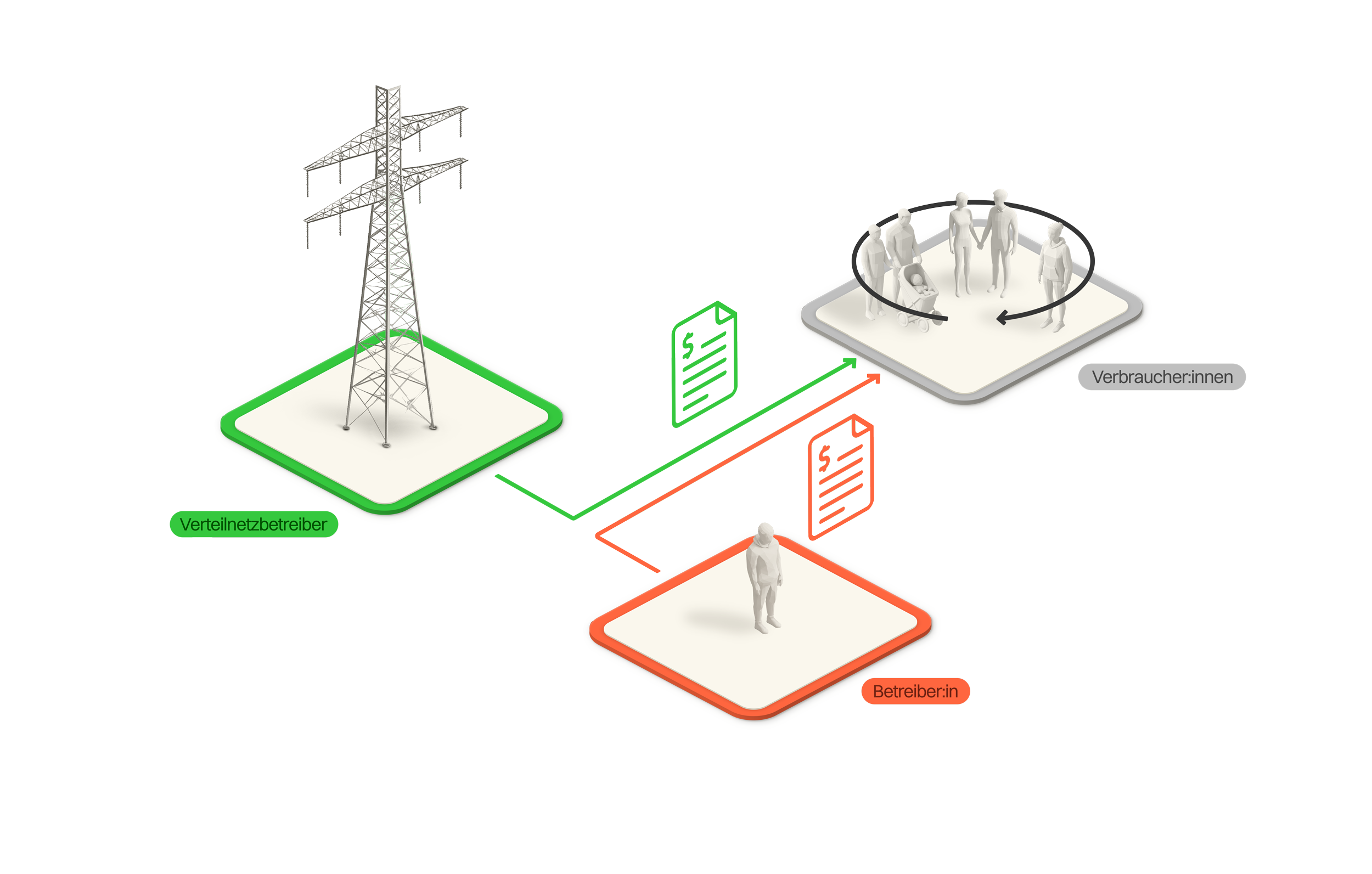 Die Verteilnetzbetreiber (VNB) können mit dem Praxismodell (auch unter anderen Namen wie Eigenverbrauchsgemeinschaft bekannt) ebenfalls eine Abrechnungslösung anbieten. Sie sind aber nicht verpflichtet, ein solches Modell anzubieten. Bei der Umsetzung gibt es Gestaltungsspielraum, wobei die Weisung der Eidgenössischen Elektrizitätskommission (ElCom) beachtet werden muss. Der VSE empfiehlt zudem, sich bei der Ausgestaltung der Regeln an den anderen Modellen zu orientieren, beispielsweise bei der Festlegung der minimal notwendigen Produktionsleistung oder der Tarifgestaltung. Ein grosser Unterschied zum ZEV und vZEV ist, dass die Teilnehmenden hierbei Kunde ihres Verteilnetzbetreibers bleiben.