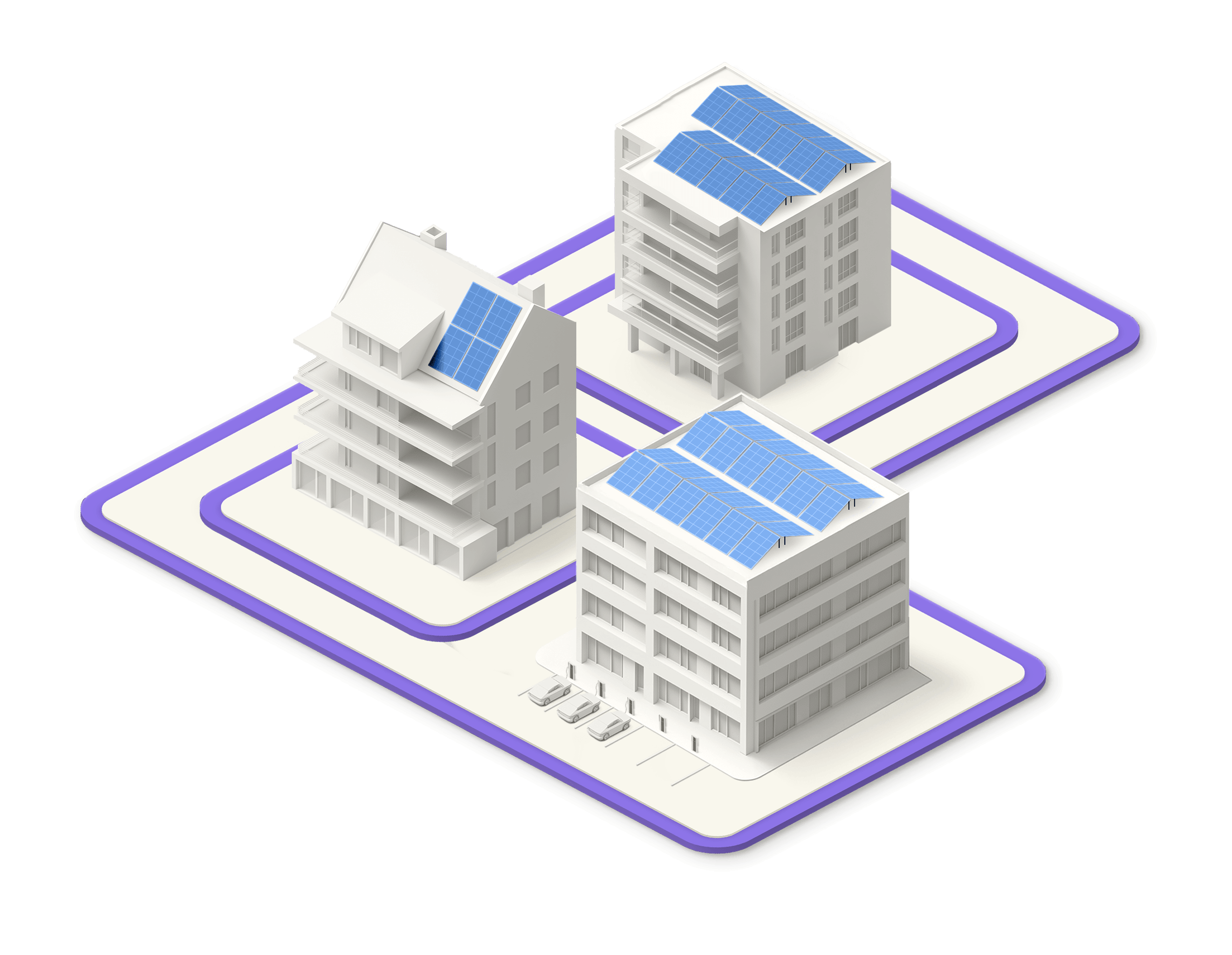 Einzelne Teilnehmende von drei Mehrfamilienhäusern (MFH) und einem Einfamilienhaus (EFH) auf der Netzebene 7 nehmen an einer LEG teil. Dabei produzieren zwei Gebäude mit PV-Anlagen Strom und speisen diesen in die LEG ein. Die Verteilung des lokalen Stroms erfolgt nur an jene Parteien, welche an der LEG teilnehmen. Der Reststrom wird den Teilnehmenden in der Grundversorgung durch den lokalen VNB geliefert. Die interne Abrechnung erfolgt durch die Verwaltung eines der MFH.