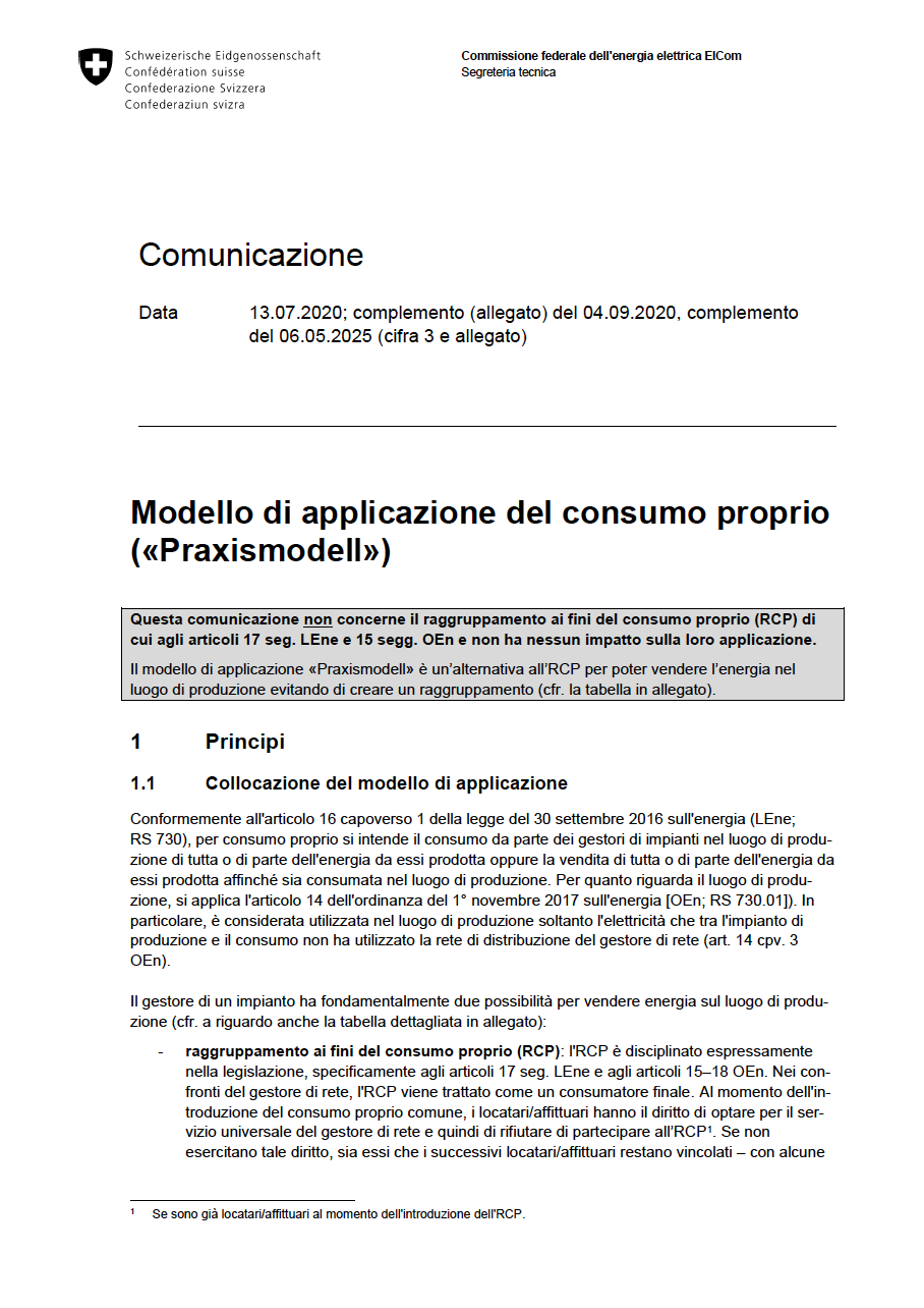 La struttura dei modelli di applicazione non è ancora soggetta a disposizioni o ordinanze legali, ma esistono comunicazioni della ElCom sui requisiti di un’attuazione conforme alla legislazione.